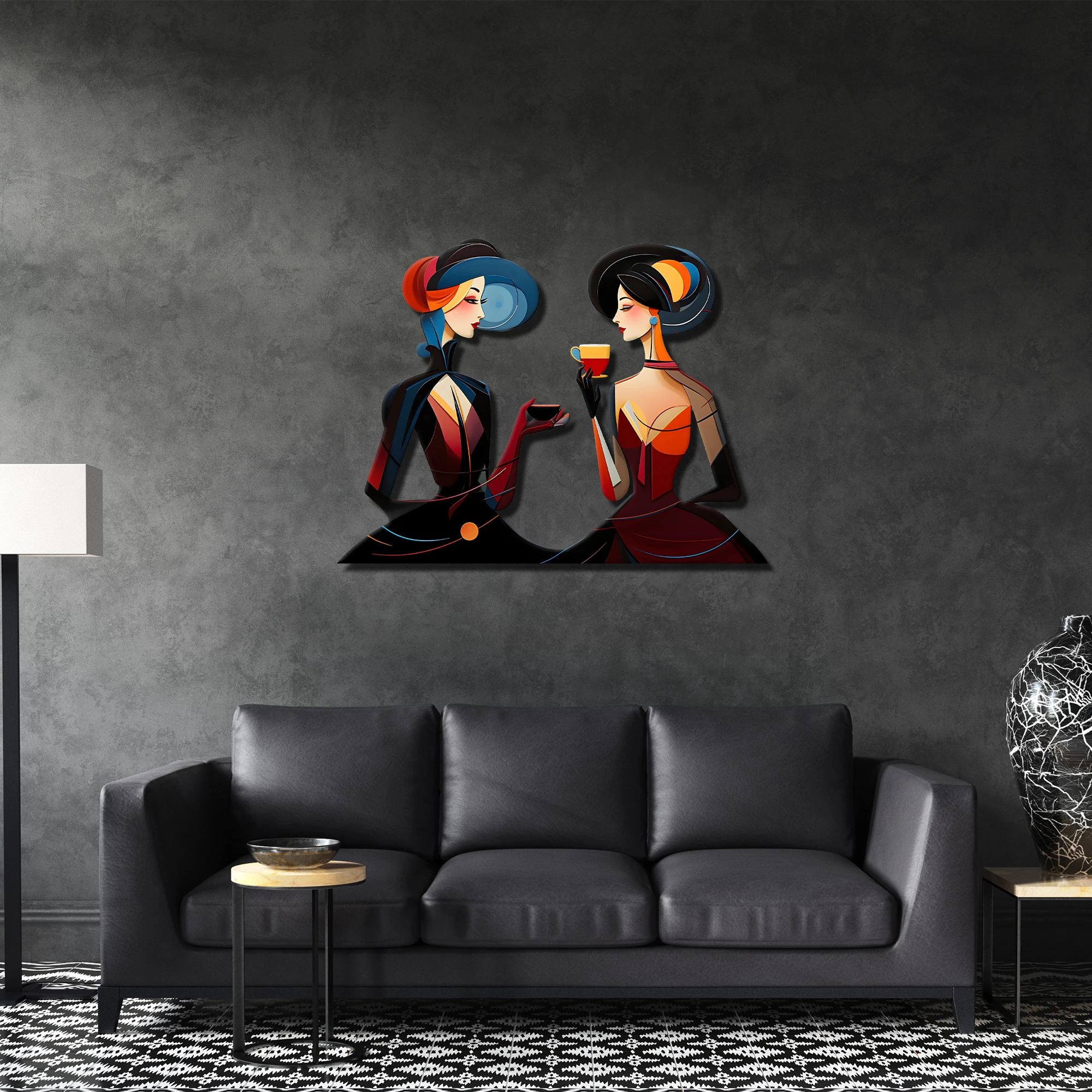 Kahve İçen Kadınlar Renkli Metal Tablo - Kandinsky Tarzı